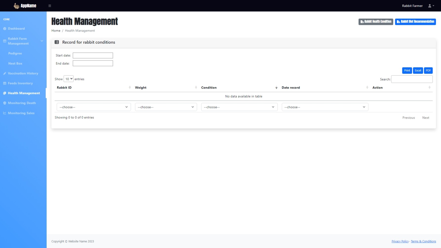 - Mobile Version With QR Scanner feature for easily find the rabbit information based on the farmer record