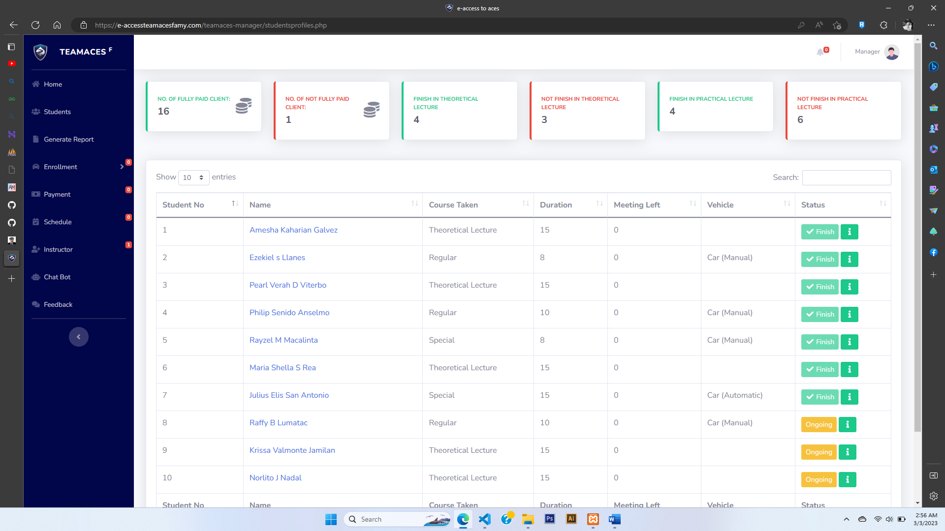 E-AccessTeamAcesFamy: A web application for Driving School Management System with automatic scheduling and chatbot that can be modify.