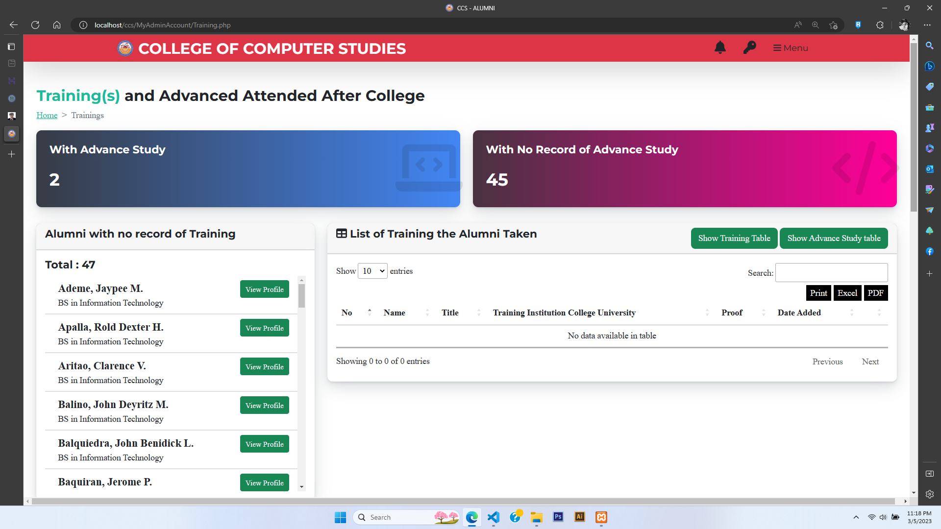 - Can generate an excel file containing all the recorded data gather by the system from the alumni.