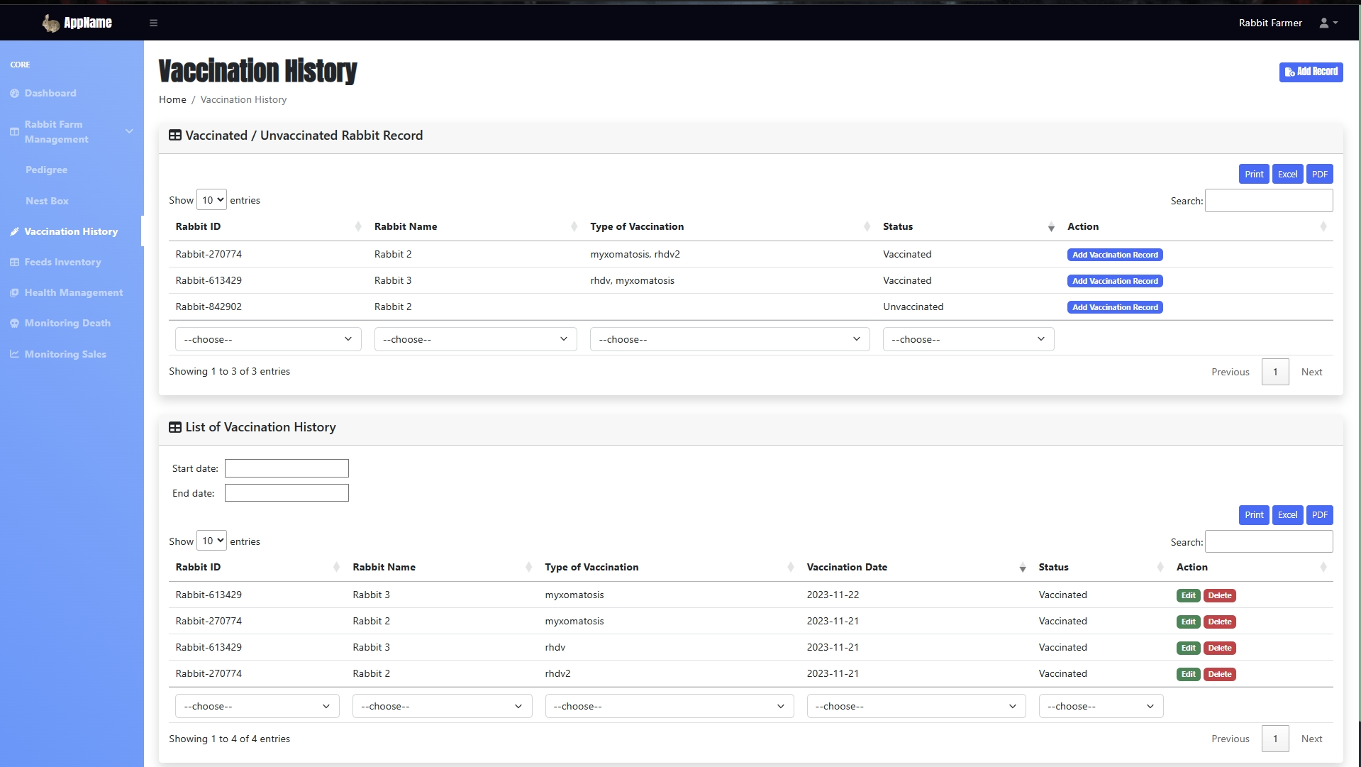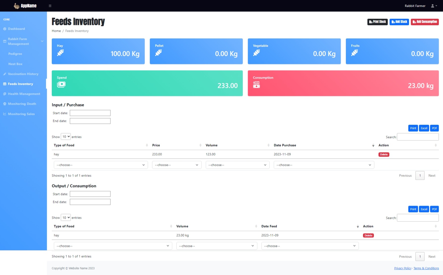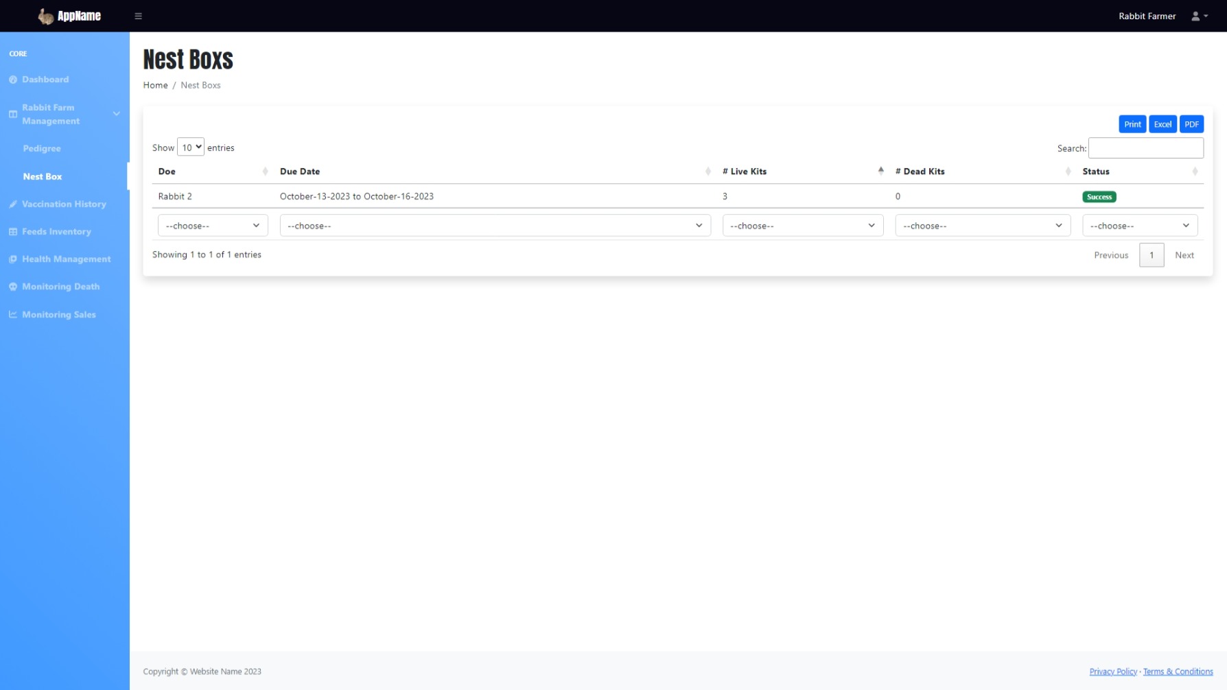 - Mobile Version With QR Scanner feature for easily find the rabbit information based on the farmer record